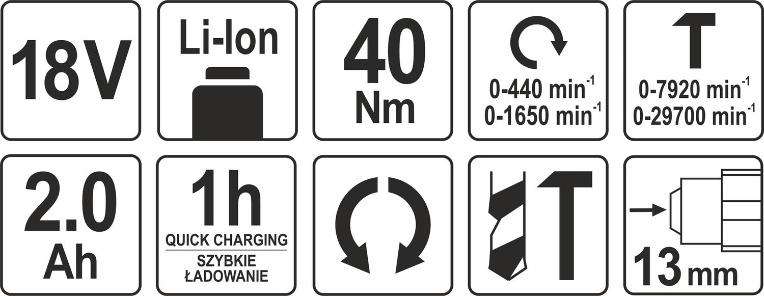 Dviejų greičių kompaktiškas smūginis akumuliatorinis suktuvas-gręžtuvas su metaliniu 13mm griebtuvu YATO YT-82786 - tai universalus nešiojamas DIY+ klasės įrankis, skirtas medžio, mūro ir metalo gręžimui bei įvairių sraigtų ir varžtų sukimui. Tikslus greičio valdymas potenciometru. Suktuvo-gręžtuvo griebtuvo diapazonas 1.5-13mm, didžiausias gręžimo diametras medienoje - 25mm, betone - 13mm, pliene - 10mm. Įrankis turi greito sustabdymo funkciją. Veleno stabdis leidžia greitai pakeisti antgalius. Suktuvo-gręžtuvo korpusas dengtas guma ir pagamintas iš stiklo pluoštu armuoto poliamido. Patvarus reduktorius, pagamintas iš 53-56 HRC plieno.