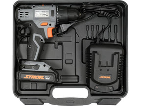 Akumuliatorinis dviejų greičių suktuvas-gręžtuvas STHOR 78081 - tai tvirtas universalus nešiojamas DIY klasės įrankis, skirtas medžio, metalo ir betono gręžimui bei įvairių sraigtų bei varžtų sukimui. Centruojantis griebtuvas. Jautrus paleidimo jungiklis su potenciometru leidžia tiksliai reguliuoti greitį. Sukimosi krypties keitimo funkcija. Veleno stabdis leidžia greitai pakeisti antgalius.