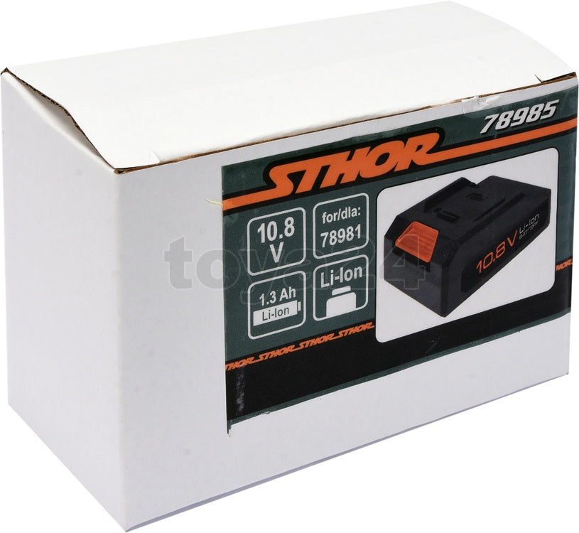 1.3Ah ličio jonų (Li-ion) akumuliatorius STHOR 78985 tinka suktuvui-gręžtuvui STHOR 78981. Akumuliatorių pilnai įkrausite per maždaug 3-5h.