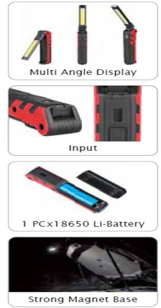 1)3W LED (head) 150LM + 5W COB LED (Side) 360LM 2)Non Polar Dimming 3)Power Display with 5 lamp, 1 lamp represents 20%