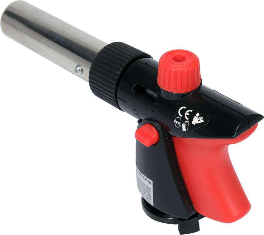 Gas burner with piezo ignition intended for jewelry, handicraft, modeling and catering work. It is used for burning small metal or wooden surfaces, bending and forming, welding and gluing, as well as lighting fireplaces, grills and stoves.