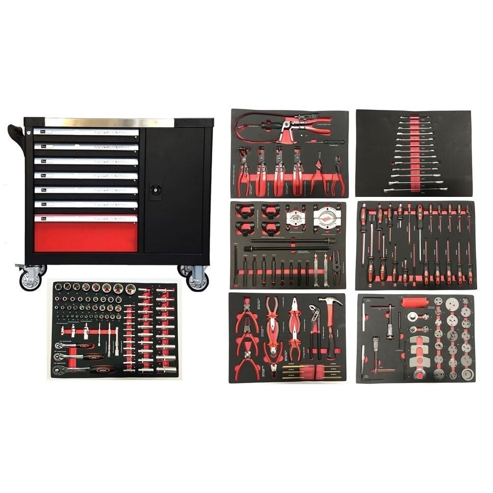 Įrankių spintelė ant ratukų XXL MAX | su įrankiais | 7 stalčiai / 1 durelės | 298 įrankiai (H70098)