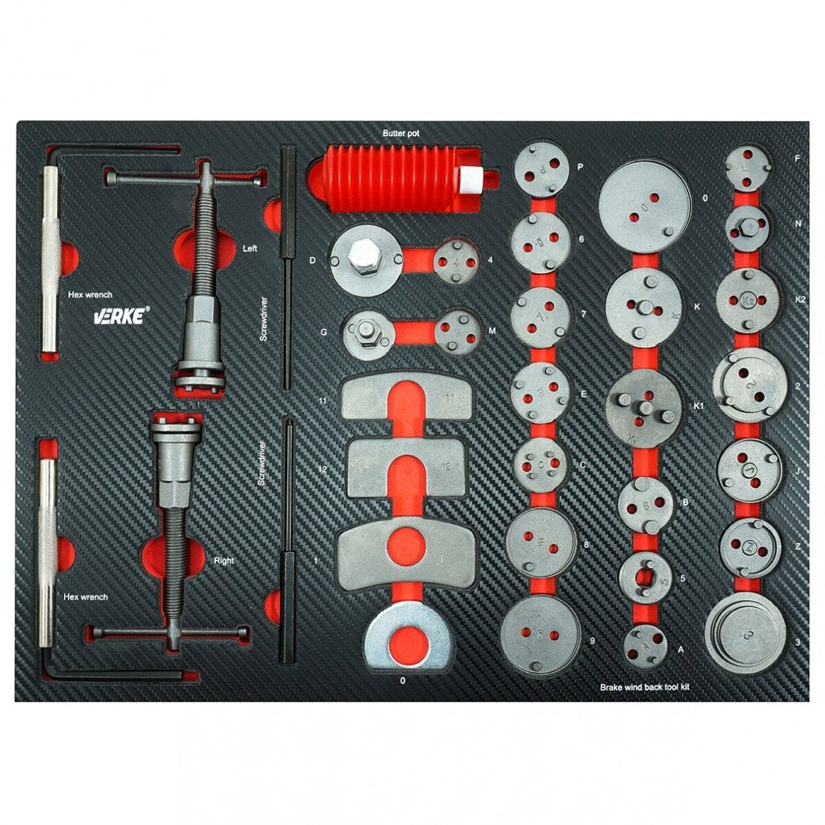 1 x įrankių dėklas VERKE H70098 Nr. 6 | įrankių komplektas stabdžių suportams | 35VNT.
