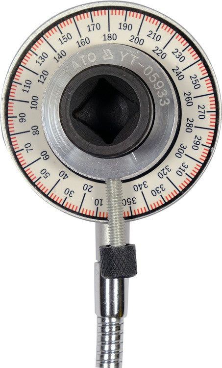 Professional torque wrench angle gauge with a clip.