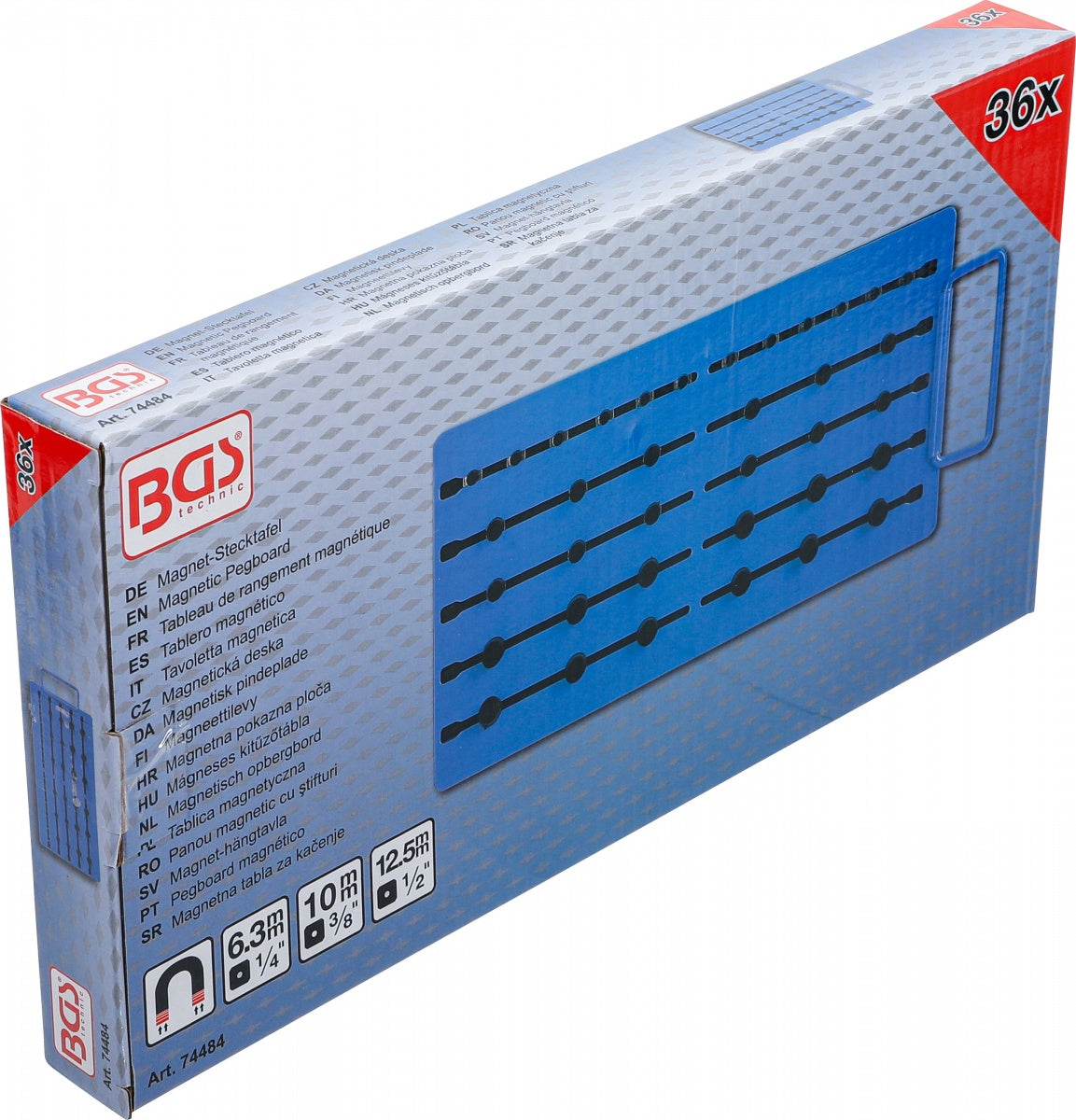 Magnetinė lenta | su išoriniais kvadratais | 36 galvutėms | 6.3 mm (1/4") / 10 mm (3/8") / 12,5 mm (1/2") (74484B)