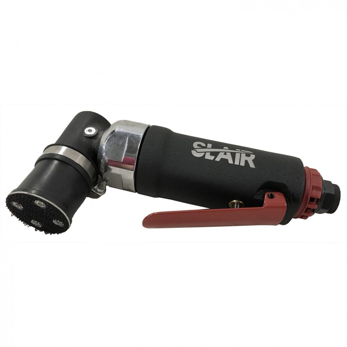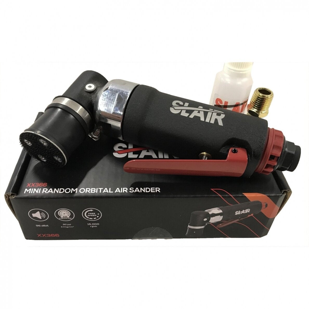 Sutrumpintas pneumatinis kampinis ekscentrinis šlifuoklis SLAIR XX366 - tai universalus, lengvas, kompaktiškas ir patogus DIY+ klasės įrankis ergonomišku korpusu, pasižymintis dideliu efektyvumu. Įrankis puikiai tinka dirbti ankštose, sunkiai prieinamose vietose. Oro išmetimas per galą. Įrankis puikiai tinka taškiniam tikslinių sričių šlifavimui, darbui metalinių gaminių sujungimo lydmetaliu vietose, rūdžių dėmių šalinimui, baldų ir medžio dirbinių šlifavimui bei kitiems tikslumo ir efektyvumo reikalaujantiems darbams. Įrankio galvutė vienu metu atlieka sukamuosius ir orbitinius judesius. Šlifavimo padas pagamintas iš poliuretano paižymi mažu šilumos perdavimu, yra lankstus ir labai patvarus.