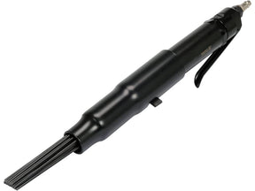 Pneumatic needle hammer designed for cleaning rust, welds and sheet metal work.