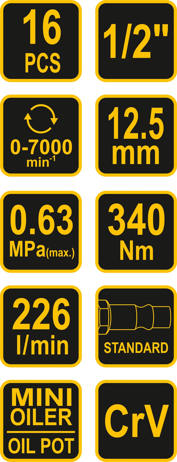 Pneumatinis smūginis veržliaraktis su įrankių rinkiniu | 12,5 mm (1/2") | 320 Nm | 16 vnt. (81101)