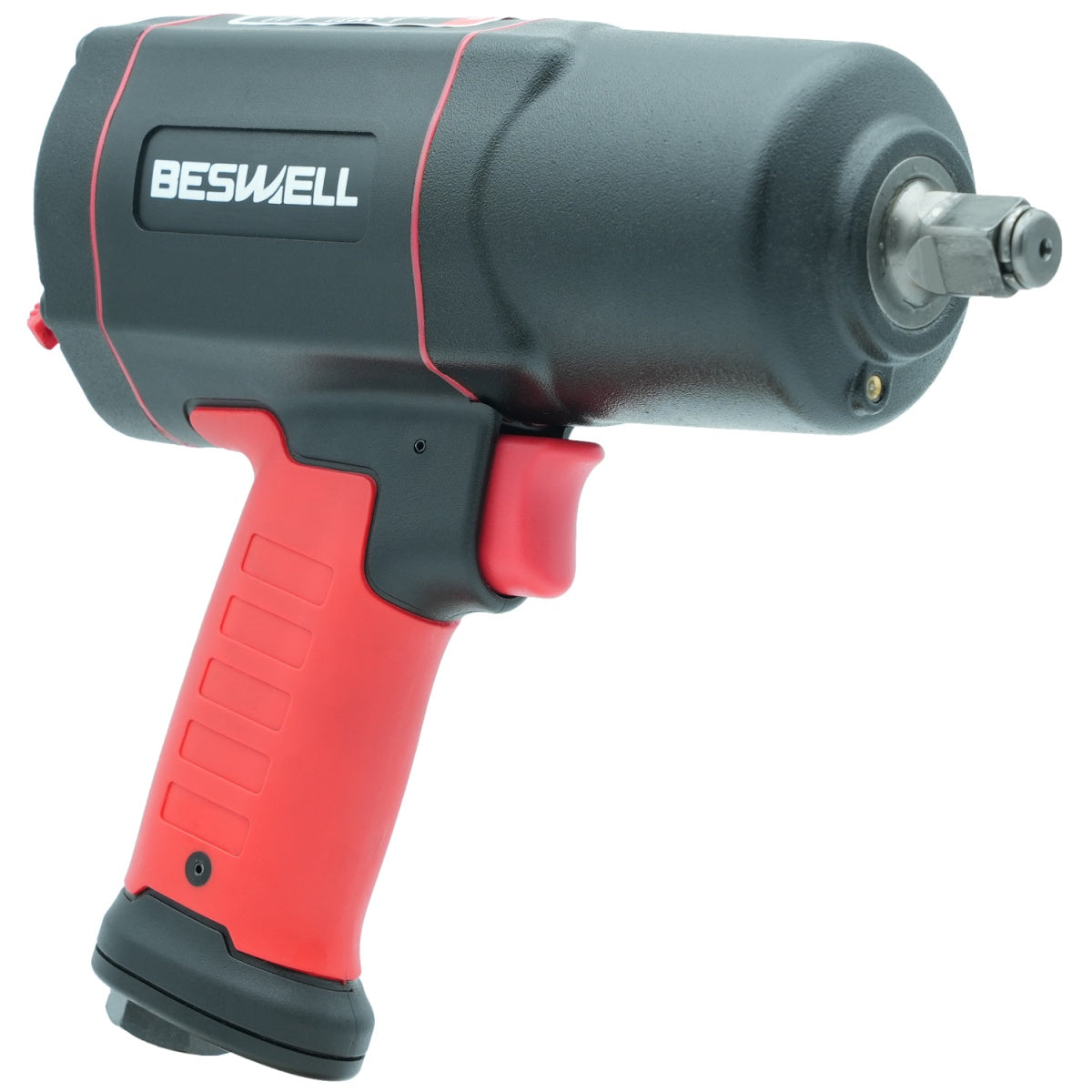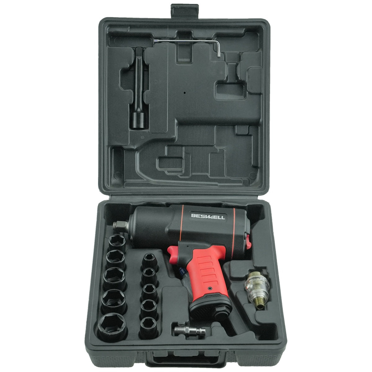 Pneumatinis smūginis veržliaraktis Beswell AKP-02 - tai universalus DIY klasės įrankis, tinkamas darbui autoservise, dirbtuvėse ar statybose. Prietaiso korpusas, pagamintas iš kompozicinio lydinio, pasižymi dideliu patvarumu. Twin Hammer sistema reiškia, kad du daužikliai per vieną apsisukimą suduoda vieną smūgį. Toks veržliaraktis yra patvariausias iš visų žinomų konstrukcijų, tvirtesnis, mažiau vibruoja bei išgauna galingą smūgį. Rinkinys Beswell AKP-02 puikiai tinka naudoti keičiant padangas ar atliekant kitus surinkimo darbus, dideliems varžtiniams sujungimams ant lengvųjų automobilių, mikroautobusų ir komercinių transporto priemonių ašių ar kėbulo.