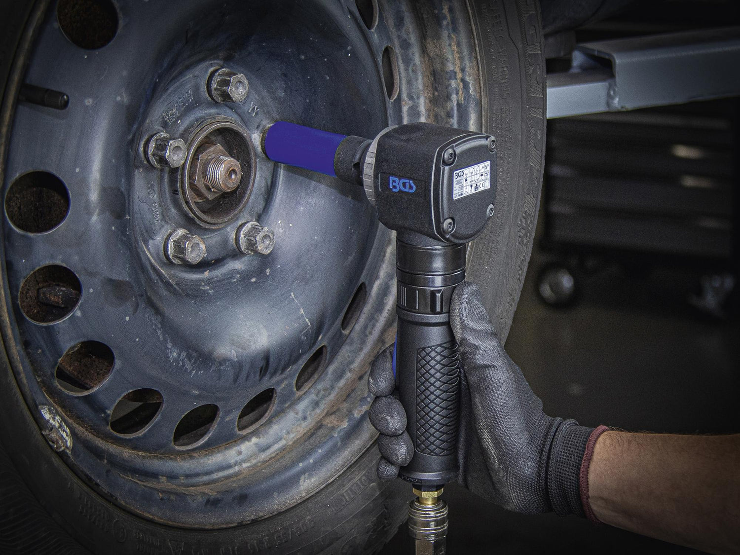 Sutrumpintas kampinis pneumatinis smūginis veržliaraktis BGS Technic 6684 - tai lengvas ir kompaktiškas PRO+ klasės įrankis, tinkamas darbui autoservise, dirbtuvėse ar statybose. Jumbo Hammer sistema reiškia, kad vienas daužiklis per vieną apsisukimą suduoda vieną smūgį. Šis mechanizmas yra ypatingai patvarus ir ilgaamžis, pasižymi didesniu, stabiliai išlaikomu sukimo momentu. Kompaktiškas kampinis pneumatinis veržliaraktis BGS Technic 6684 turi ergonomišką, neslystančią rankeną su reguliuojama oro išleidimo kryptimi, tinkamas dirbti sunkiai prieinamose vietose. Įrankis lengvas, mažai vibruoja darbo metu. Jungiklio pagalba galima viena ranka perjungti sukimosi kryptį. 3 lygiais reguliuojamas sukimo momentas [pagal laikrodžio rodyklę].