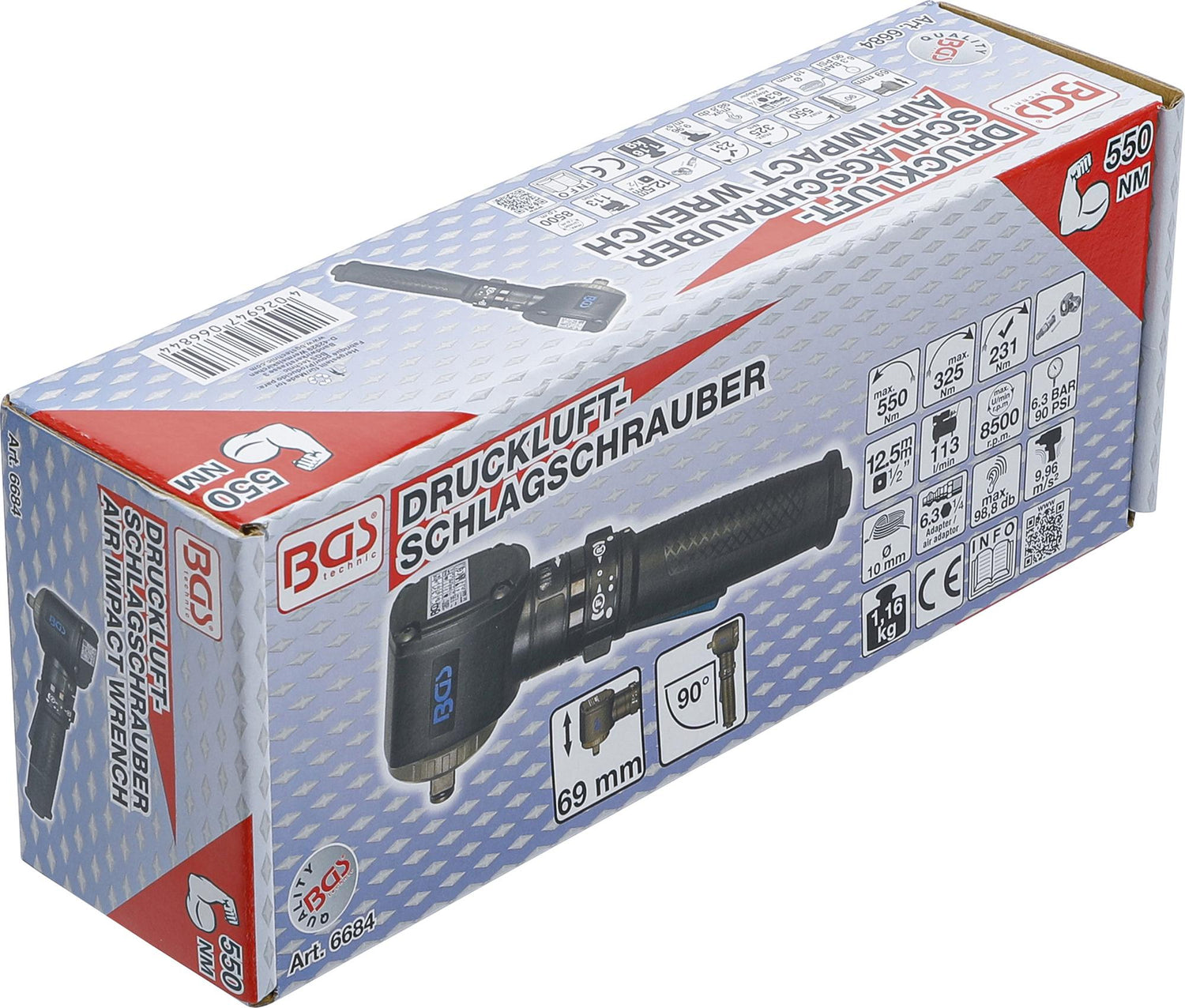 Pneumatinis smūginis veržliasukis | 12,5 mm (1/2") | kampinis | 550 Nm (6684) yra užsakomoji prekė, ją išsiųsime per 3-4 savaites.