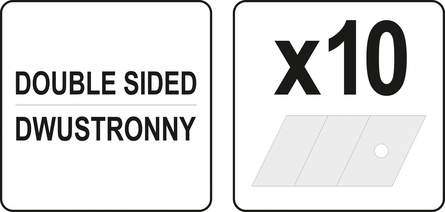 Knife, cutter for cutting plasterboard simultaneously on both sides. Maximum cutting width approx. 600 mm, maximum thickness of cut board up to approx. 18 mm. It has two trapezoidal cutting knives with a length of about 10 mm and two guide handles. Spare blades included