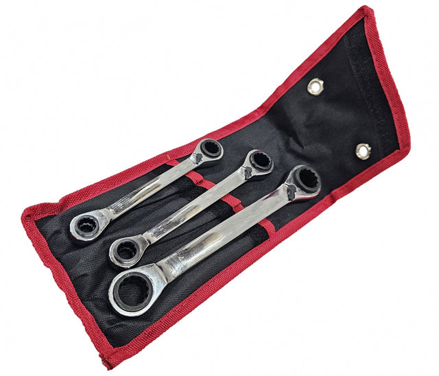Terkšliniai daugiafunkciniai raktai | dvipusis su reversu | 4-in-1 | 8-19 mm | 3 vnt. (RS3B)