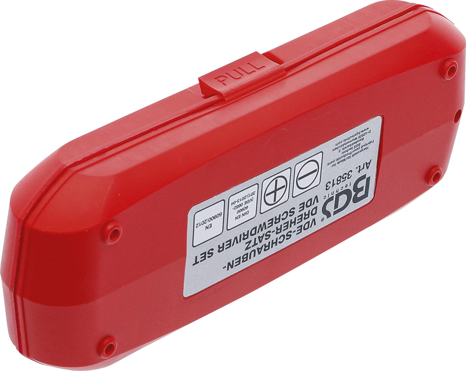 Izoliuotų atsuktuvų rinkinyje elektrikams BGS Technic 35813 sukomplektuoti PRO+ klasės įrankiai, atitinkantys DIN (Deutsches Institut für Normung - Vokietijos standartizavimo instituto) standartus. Atsuktuvai pagaminti iš tvirto chromo vanadžio (CrV) įrankių plieno. Keičiamos geležtės automatiškai užfiksuojamos ergonomiškoje rankenoje taip apsaugant nuo netyčinio ištraukimo. Šiems įrankiams, izoliuotomis 1000V rankenomis, išduotas VDE (Verband der Elektrotechnik, Elektronik und Informationstechnik - Vokietijos elektros inžinerijos, elektronikos ir informacinių technologijų asociacija) sertifikatas.