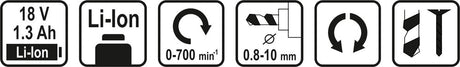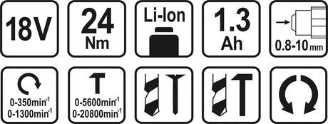 Аккумуляторный шуруповёрт | LI-ION, 18V, 1,3AH